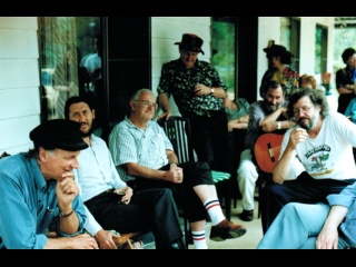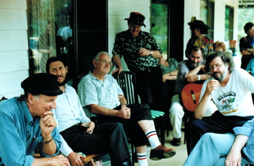 Scotty's Wake at his home, Balmoral Village, Dec 1995. Chris Kempster, 'Ulladulla', Frank Maher, Keith McKenry, Kevin Baker with guitar. Photographer unknown